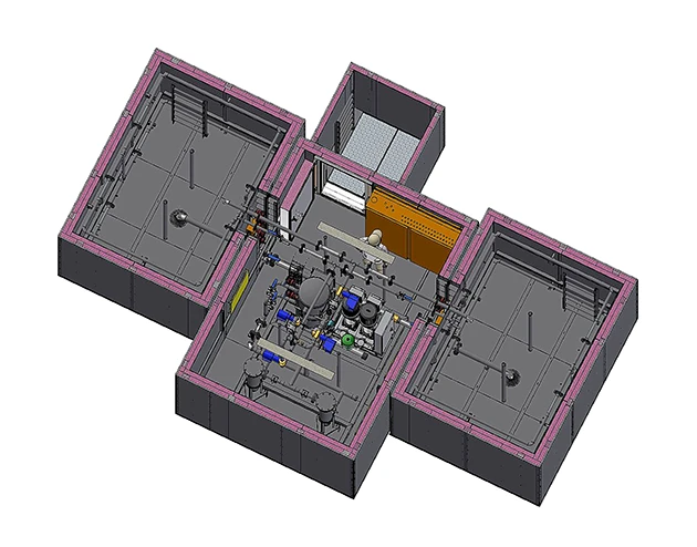 The pump room contains all the equipment required to convert the snow into water and to ensure clean, filtered water is provided to the base. The control room consists of pumps, element tanks, a water filtration system, valves, sensors and electrical control equipment. The unit can melt 850kg of ice in a 2 hour period to 25°C. The structure of the tanks and control room is manufactured from 316 Stainless Steel and insulated with 140mm insulation material to prevent excessive heat loss to the environment.