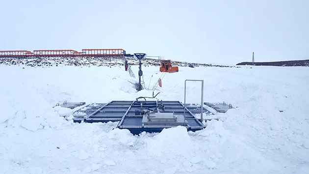 The melter is installed underground approximately 100m away from the base. Snow is bulldozed, shovelled, or naturally falls into the tanks. The snow is melted by constantly circulating existing water in the tank and spraying it onto the snow. This process continues until all the snow is melted. Thereafter the water temperature is maintained until it is required by the base, after which it is pumped to the storage tanks in the base.